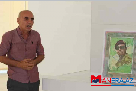 “Hadrut fatehi”nin rəssamı Sehran Allahverdi şəhidin yağlı boyayla çəkdiyi rəsmini şəhidin anasına bağışladı.