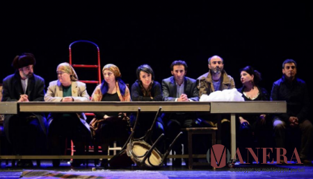 Kəndistan əhli üçün misli yoxdur. Amma heç bir evdə onu içəri buraxmazlar. Çünki yaş olar, palçıq olar. Hara getsə aləmi ləkələr, bulaşdırar. Odur ki, qapıda cütlənib qalar məlul-məlul sahibini gözlər.” Tamaşada isə tam əksinə qaloş xalaların ayağından sona qədər çıxmır. Bu da məndə çaşqınlıq yaratdı. Məclis evdəmi keçirilib, yoxsa evin həyətindəmi. Sona qədər bunu çözməyə çalışdım. Bunu çözmək isə çox vacib idi. Tamaşanın sonunu anlamaq üçün. ![]()